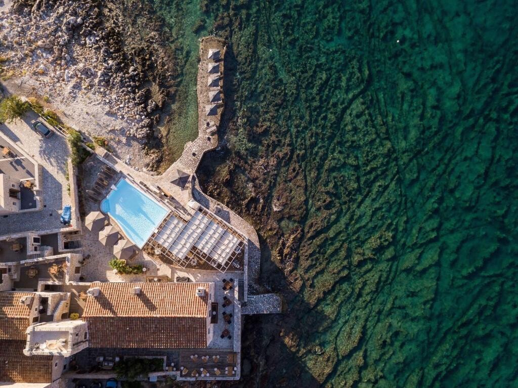 Kinsterna Hotel & Spa znajduje się w odrestaurowanej bizantyjskiej rezydencji w pobliżu miasta Monemvasia, które jest znane jako „Gibraltar Wschodu”. Hotel oferuje luksusowe pokoje, doskonałe jedzenie i wino oraz znakomite centrum spa. Goście mogą podziwiać widoki na winnice i gaje oliwne lub zrelaksować się przy basenie.
