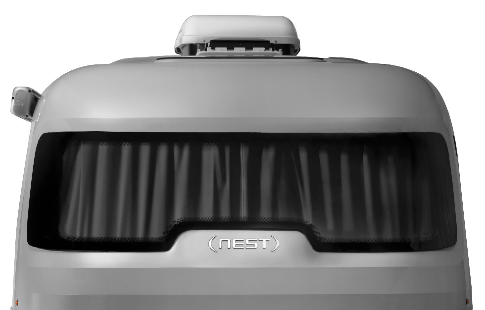 Firma Airstream zajmuje się produkcją przyczep aluminiowych od prawie 90 lat. Już w latach 50. założyciel firmy Wally Byam eksperymentował z wykorzystaniem włókna szklanego. Minęło prawie pół wieku, zanim firma Airstream rozpoczęła produkcję przyczep Nest, których zewnętrzne części wykonane są z wyżej wymienionego materiału. Gniazdo ma wygląd miniatury wagon kolejowy, który ma drzwi z tyłu na środku. Posiada zaokrąglone okna i dwukolorowe malowanie w połączeniu szarości i bieli. Przednia szyba ma kształt przypominający gogle narciarskie. Podobnie jak wszystkie Airstreamy, Nest jest nisko położony przy ziemi i ma aerodynamiczny kształt.