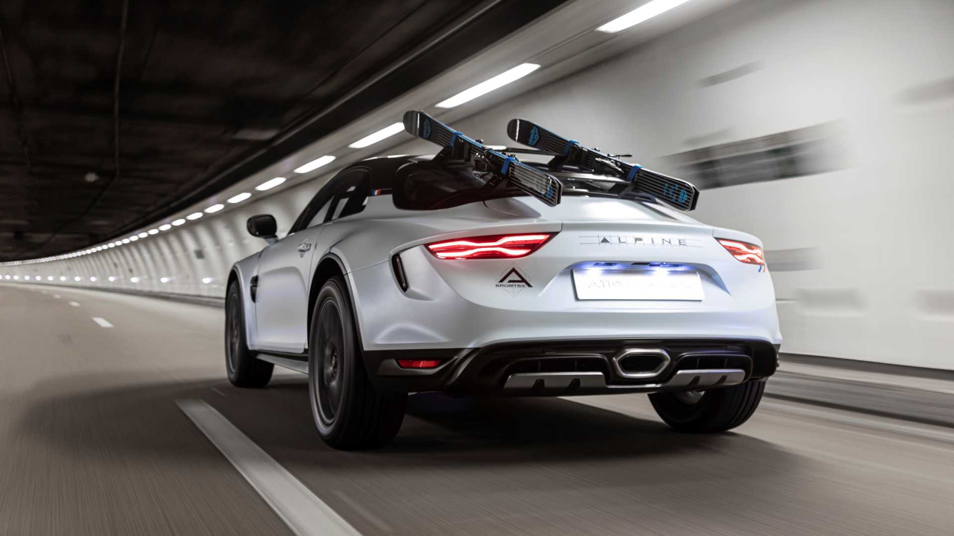 Alpine A110 SportsX czerpie inspirację z modelu A110 Rally i bazuje na obecnym A110 CzystyPosiada udoskonalone zawieszenie, które jest uniesiony Do 60 mm I szersze ciało, który został rozszerzony o dodatkowe 80 mm.