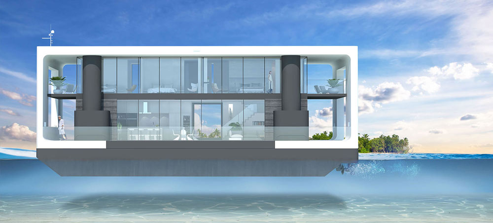 Na Arkup mają świadomość, że wynika to głównie z coraz ostrzejszych i nieprzewidywalnych warunków pogodowych na morzu żeglarstwo coraz bardziej ryzykowne. Więc opracowali i zbudowali jacht, który może walczyć nawet huragan kategorii 4. W rzeczywistości jest to dom nad morzem. wznosi się na dwóch piętrach, ma w pełni wyposażona kuchnia, jadalnia, salon, Cztery sypialnie I tyle samo łazienek. Możesz także samodzielnie zaaranżować pokoje. Jest dużo dostępnych mieszkań Powierzchnia 210 m², łączna powierzchnia s wraz z tarasami mierzy aż 405 m².