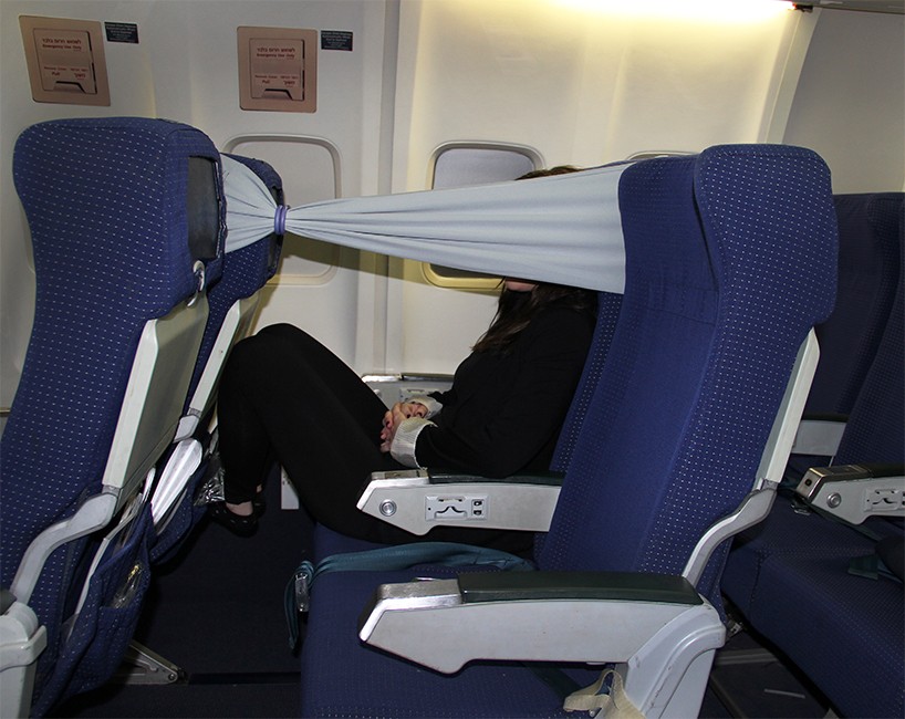 Wszyscy, których nie stać na latanie w klasie pierwszej lub biznes, skazani jesteśmy na klasę ekonomiczną, co oznacza, że podczas lotu jesteśmy ściśnięci między nieznajomymi, często nawet między własnymi kolanami i bez jakiejkolwiek prywatności. Aby takie loty uprzyjemnić pasażerom, dwóch izraelskich studentów z Akademii Sztuki i Projektowania Bezalel przygotowało B-Tourist Strip, elastyczny dodatek do siedzenia, będący „hamakiem” lub „hiszpańską ścianą” na głowę i szyja.