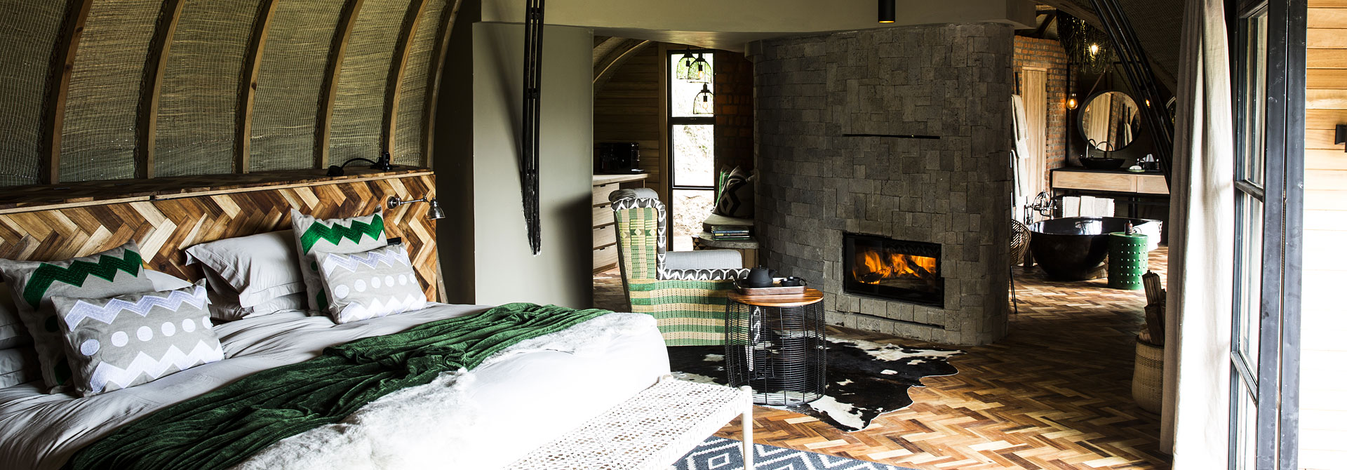 Vsaka meri 91 kvadratnih metrov ter je opremljena s spalnico, kopalnico ter teraso, s katere lahko uživate v pogledu na vulkane Karisimbi, Bisoke in Mikeno. Arhitektura vil je poklon lokalni tradiciji, z którego słynie slamnatih strukturah in kot taka spominja na obliko hribov, ki krasijo pokrajino. Notranjost je izjemno dodelana, večina pohištva pa je iz tkanih materialov. Vile so razporejene tako, da obdajajo skupno ognjišče, kjer se ob večerih lahko družite z ostalimi gosti. Čez dan pa se boste najbrž odpravili na treking, kjer boste upali, da srečate kakšno gorilo.