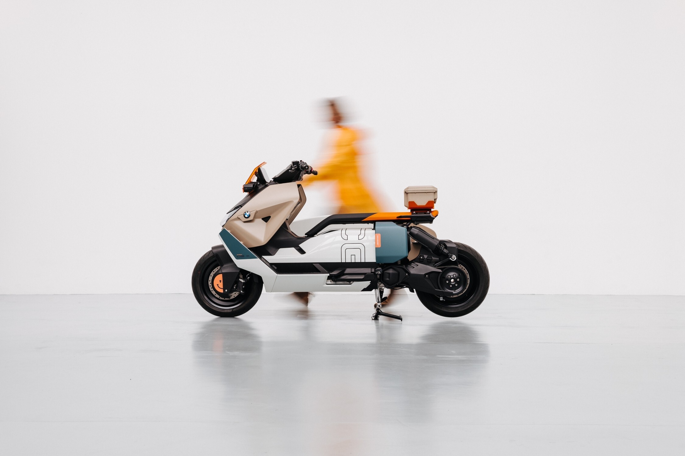 Kolorystyka przykuwa wzrok już na pierwszy rzut oka BMW CE 04 Vagabond Moto Concept. Dzięki połączeniu bieli, ciemnozielonej, beżowej i czarnej ta hulajnoga elektryczna nie jest nudna. Jednak nie tylko kolory go wyróżniają — to nowoczesne elementy projektowe zastosowane przez Vagabund Moto GmbH.