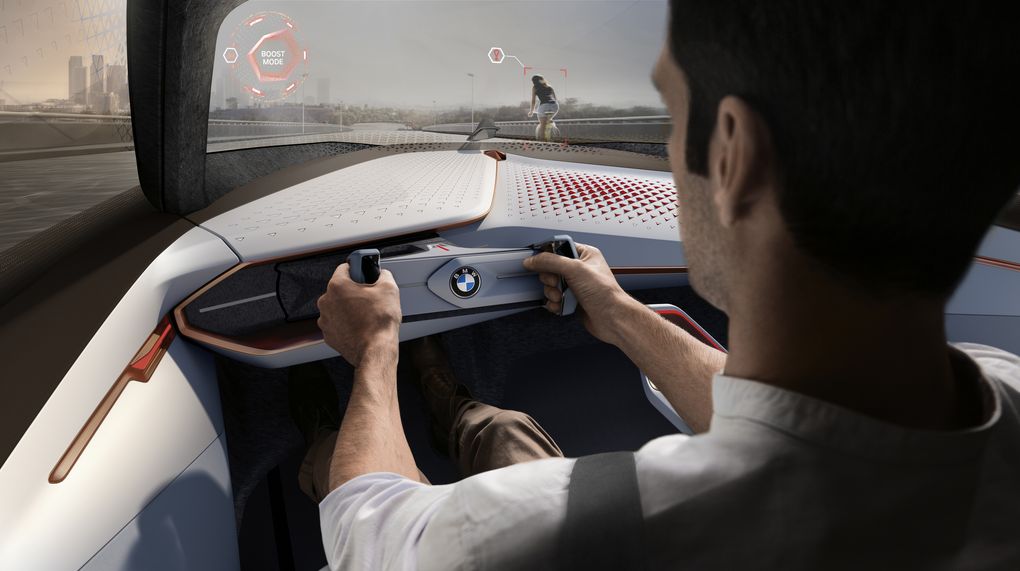 BMW Vision Next 100 Concept to jest študija avtonomnega vozila, ki se popolnoma podreja potrebam voznika. Da se voznik in avtomobil čutita kot eno, so pri BMW-ju dosegli s sistemom ”Alive Geometry” (živa geometrija), ki z voznikom komunicira v načinih Boost in Ease. V prvem prepušča vozniku nadzor nad upravljanjem in ga s sistemom aktivne varnosti kot angel varuh varuje pred nevarnimi situacijami (s prikazom idealne linije vožnje, svetovanjem o optimalni hitrosti, nagibom volana, projekcijo nevidnih ovir …), v načinu Ease pa voznik vozilu povsem prepusti nadzor in izbiro, saj je namenjen avtonomni vožnji (volan se pospravi v armaturno ploščo, prilagodijo se vzglavniki, sedež voznika in sovoznika se obrneta drug proti drugemu …). V skladu z obema režimoma se močno spremeni notranjost, ki se lahko pohvali s kar 800 gibljivimi deli.