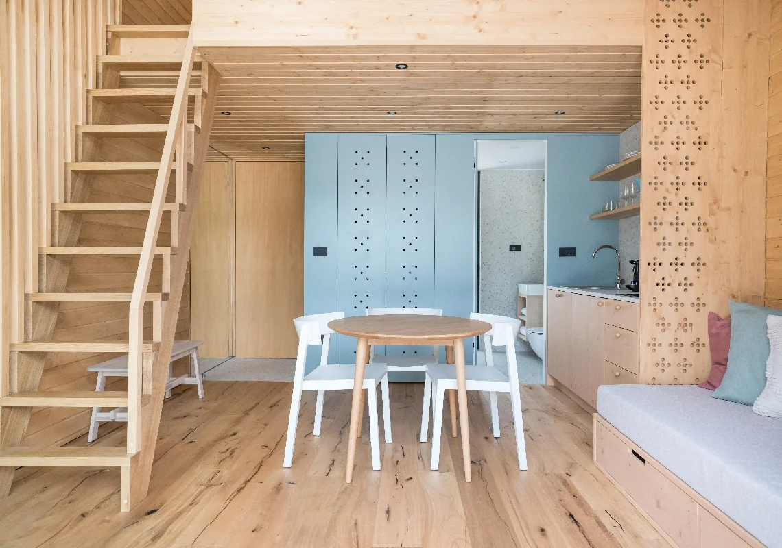 Wszyscy drewniany dom został zaprojektowany jako Twoja wyspa szczęścia, gdzie wyobraźnia i rzeczywistość przeplatają się, tworząc przestrzeń do relaksu i przyjemności. Dzięki wnętrzu charakteryzującemu się 6-metrowym dachem i dużymi przeszkleniami, słońce obficie wypełnia przestrzeń, tworząc wrażenie ciepła i otwartości. Po drabinie wspinasz się na podwyższoną platformę sypialną, gdzie spotykają się wygoda i elegancja, oferując idealne schronienie przed zgiełkiem codziennego życia.