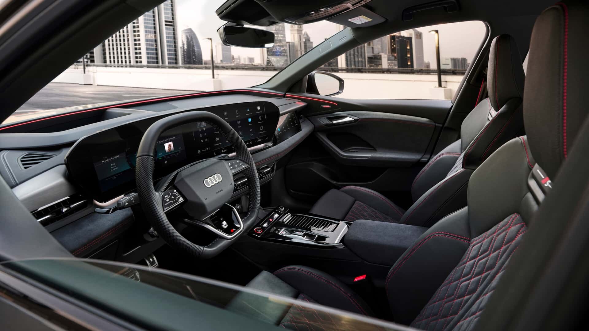 W kabinie Q6 E-Tron dominuje technologiczna perfekcja, co potwierdzają 11,9-calowy ekran kierowcy i 10,9-calowy ekran pasażera, który został zaprojektowany tak, aby kierowca go nie widział. Dzięki temu wyjątkowemu układowi każdy pasażer w pojeździe może poczuć się częścią interaktywnej jazdy.