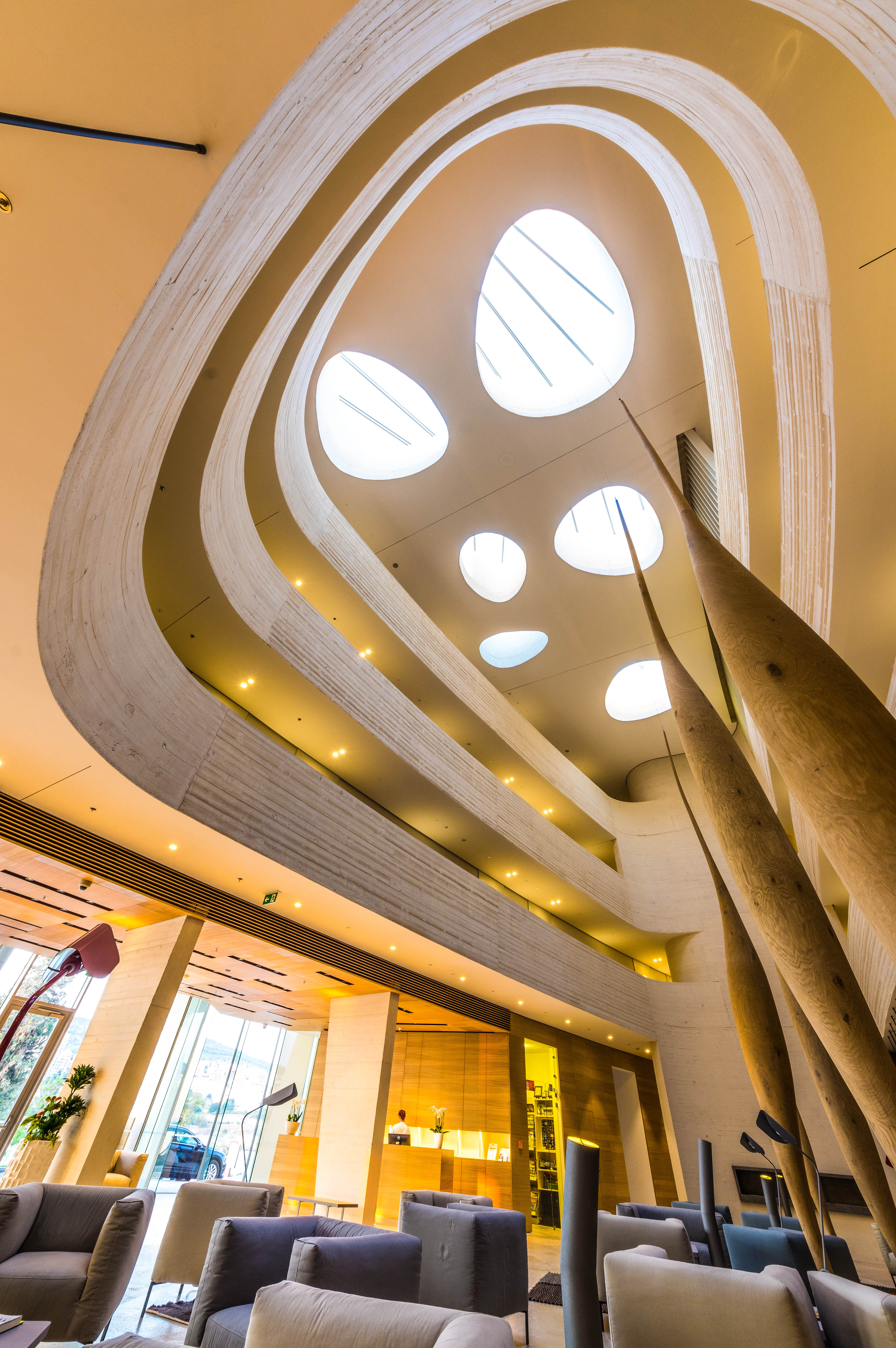 Arhitekturna zasnova objekta dopolnjuje naravno krajino in okolje. Pri zunanjem in notranjem opremljanju so bili uporabljeni le trije materiali – Beton, drewno I szkło, ki skrbijo tako za okoljsko kot ekonomsko trajnost objekta, medtem ko pročelje iz belega betona dopolnjuje odtisnjen vzorec lesa, ki pri obiskovalcu pušča prijeten vtis naravnega.