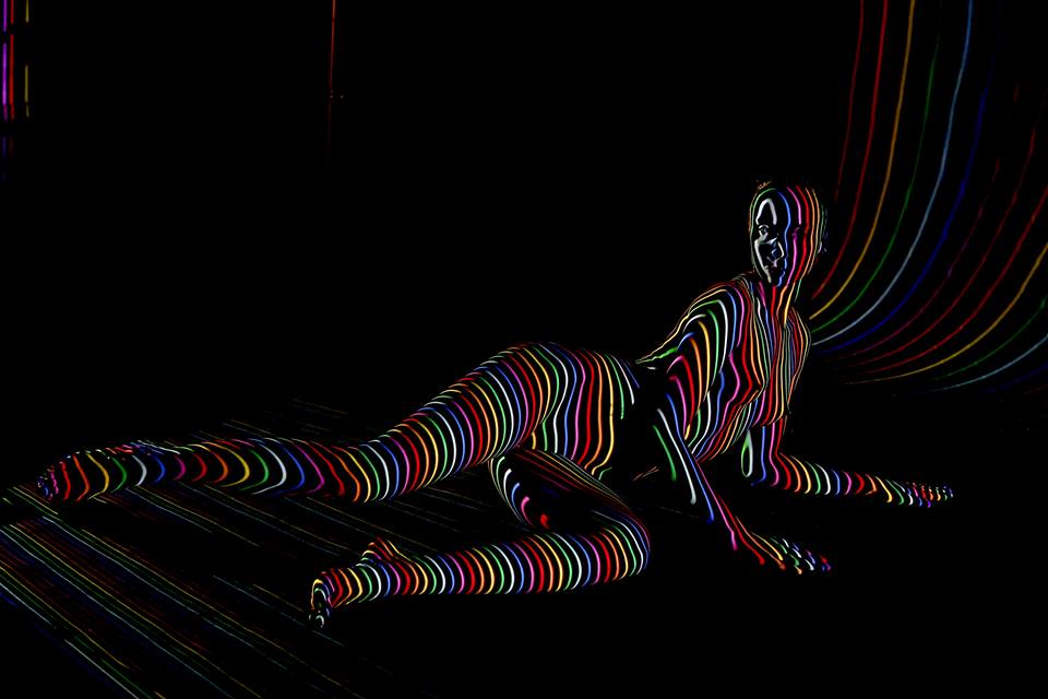Dani Olivier jest autorem uwodzicielskich portretów kobiet, które ubiera tylko w światło. Od ośmiu lat pracuje z kolorowymi projekcjami, którymi rysuje i podkreśla ciało.