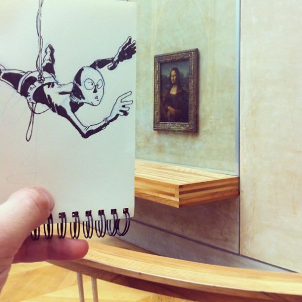 Francuski ilustrator David Troquier postanowił połączyć dwa światy: komiksowy i prawdziwy. Zrobił to w podobny sposób, jak animatorzy w teledysku do utworu „Take On Me” norweskiego zespołu A-ha, tyle że w formie statycznej i z większą interakcją między nimi.