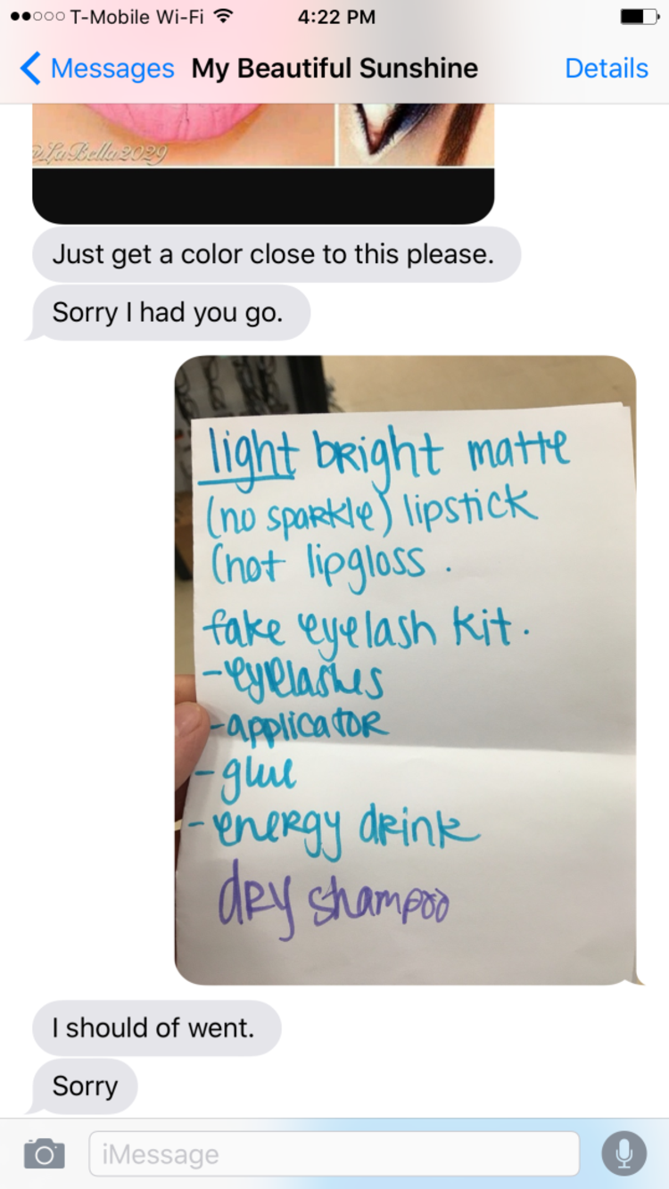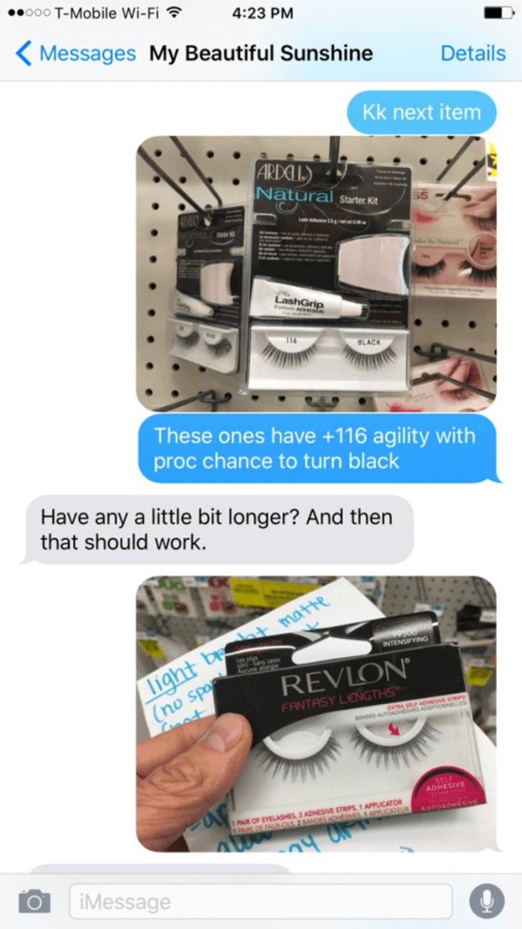 To dowód rozmowa dziewczyny z jej chłopakiem (Przez użytkownika Imgur Bluefiz), który oferuje jej zakupy zapas kosmetyków i makijażu, mówiąc, że podoła zadaniu, ale jak się wkrótce okaże, daleko mu do tego. Śmiech gwarantowany!
