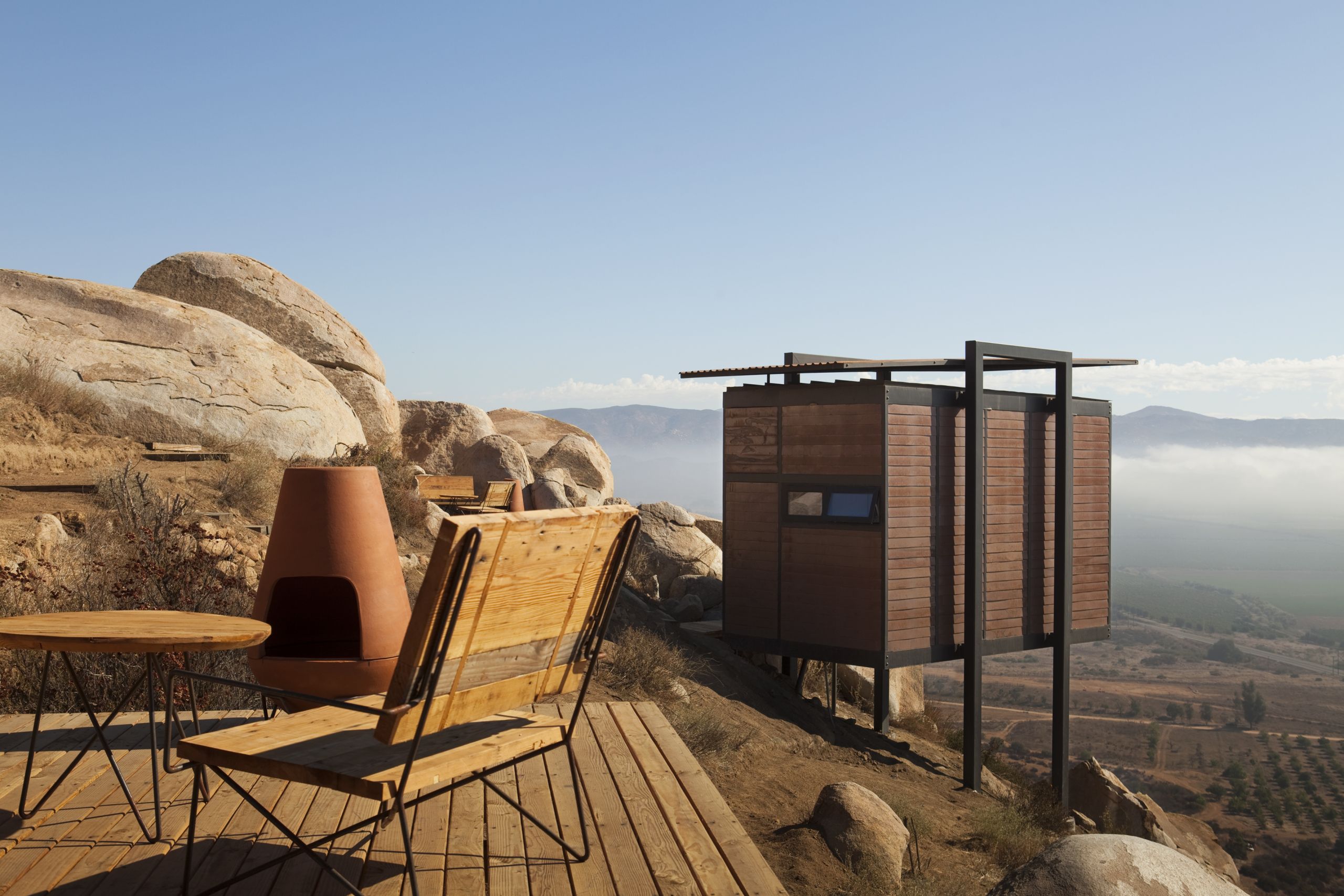 Do każdego pokoju przynależy także prywatny taras z kominkiem, na którym goście z lampką wina w dłoni mogą podziwiać piękny widok na okoliczne doliny. Na miejscu znajduje się także duży basen i jacuzzi, a prywatność zapewniają pokoje, które stoją samodzielnie niczym nowoczesne drewniane domki.