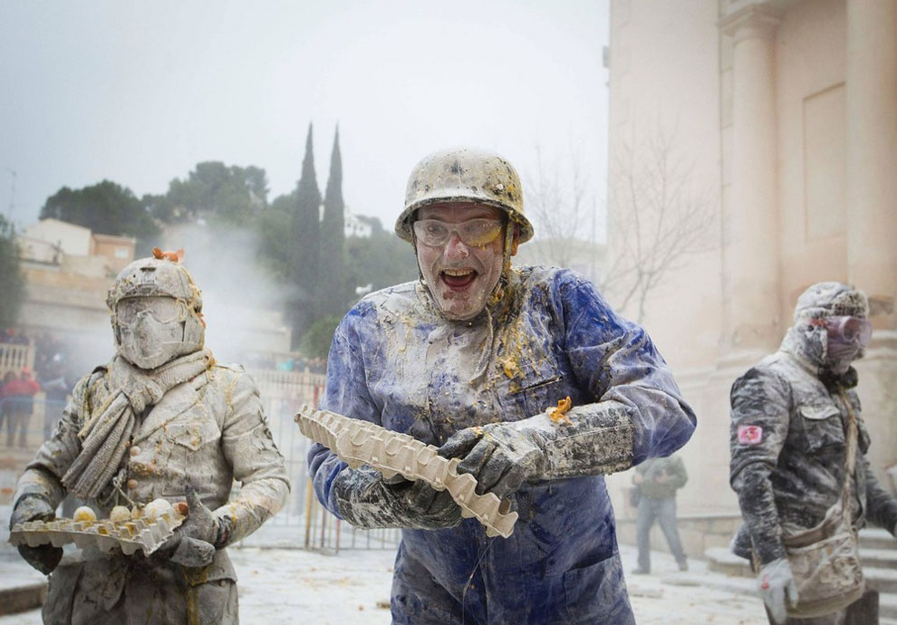 W małym mieście Bunol na vzhodu Španije vsako leto poteka tradicionalno obmetavanja s paradižniki. To pa ni edina nenavadna tradicija na Iberskem polotoku, saj se tam vsakega 28. decembra v mestu Ibi obmetavajo z moko in jajci, prižigajo petarde ter špricajo z gasilnimi aparati.