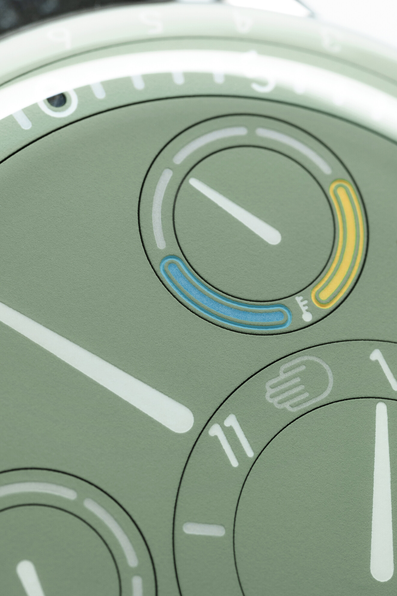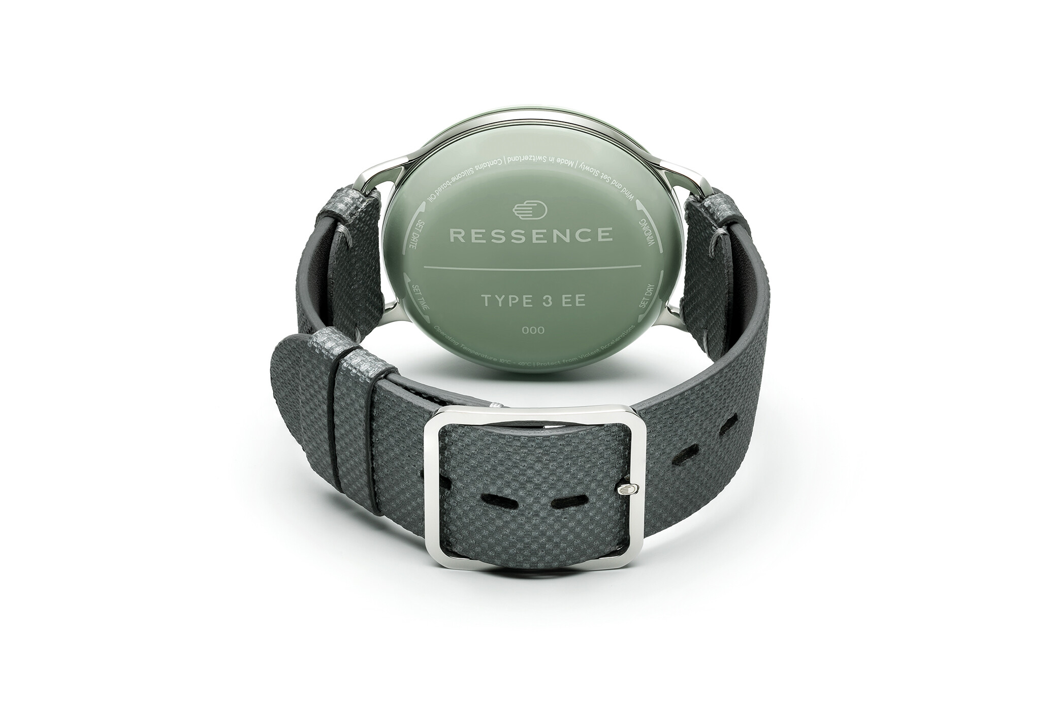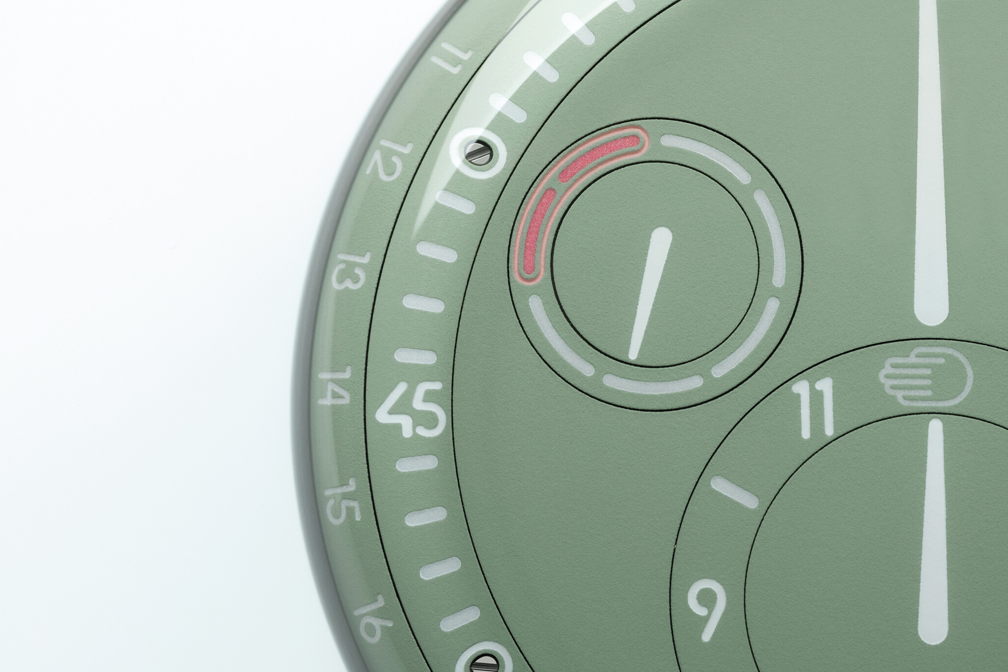 Prawdziwa magia Ressence Type 3 EE Eucalyptus kryje się jednak w systemie Orbital Convex System (ROCS) firmy Ressence na spokojnej zielonej tarczy. Dzięki kwartetowi harmonijnie obracających się tarcz pomocniczych, każda służy wyjątkowemu celowi. Od wskazywania godziny i liczenia sekund po pokazywanie dnia tygodnia, a nawet temperatury – ten zegarek może zrobić wszystko. A dla tych, którzy lubią śledzić daty (bo kto tego nie robi?), pierścionek powiadomi Cię o dacie.
