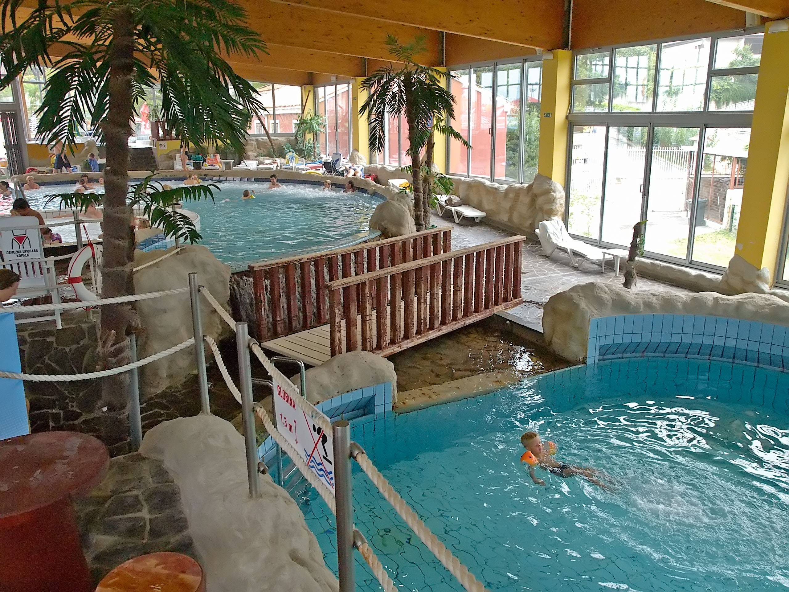 Park wodny Bohinj oferuje baseny o powierzchni ponad 500 m². Baseny mają zróżnicowany design i odpowiednią głębokość dla wszystkich grup wiekowych. Kompleks basenów podzielony jest na hol wejściowy z recepcją i pierwszą salę solną z solą piranii w Słowenii. Na terenie basenowym znajduje się większy basen rekreacyjny, dwa jacuzzi oraz basen dla dzieci z atrakcjami. W głównym basenie rekreacyjnym można odprężyć się w jaskini dźwiękowej lub przytulić w jaskini zakochanych. Amatorzy adrenaliny mogą spróbować swoich sił na basenowej ściance wspinaczkowej lub zjechać na zjeżdżalni. Atrakcje i efekty basenowe, takie jak wanny masujące, bicze wodne, rwąca rzeka, tropikalny wodospad z pewnością dostarczą Państwu dodatkowej przyjemności. Latem zewnętrzny taras jest idealnym miejscem do opalania i relaksu, a zimą przez panoramiczny dach można obserwować spadające płatki śniegu z leżaków. Ten park wodny zdecydowanie zasługuje na miejsce w selekcji najlepsze odkryte baseny i parki wodne/Słowenia.
