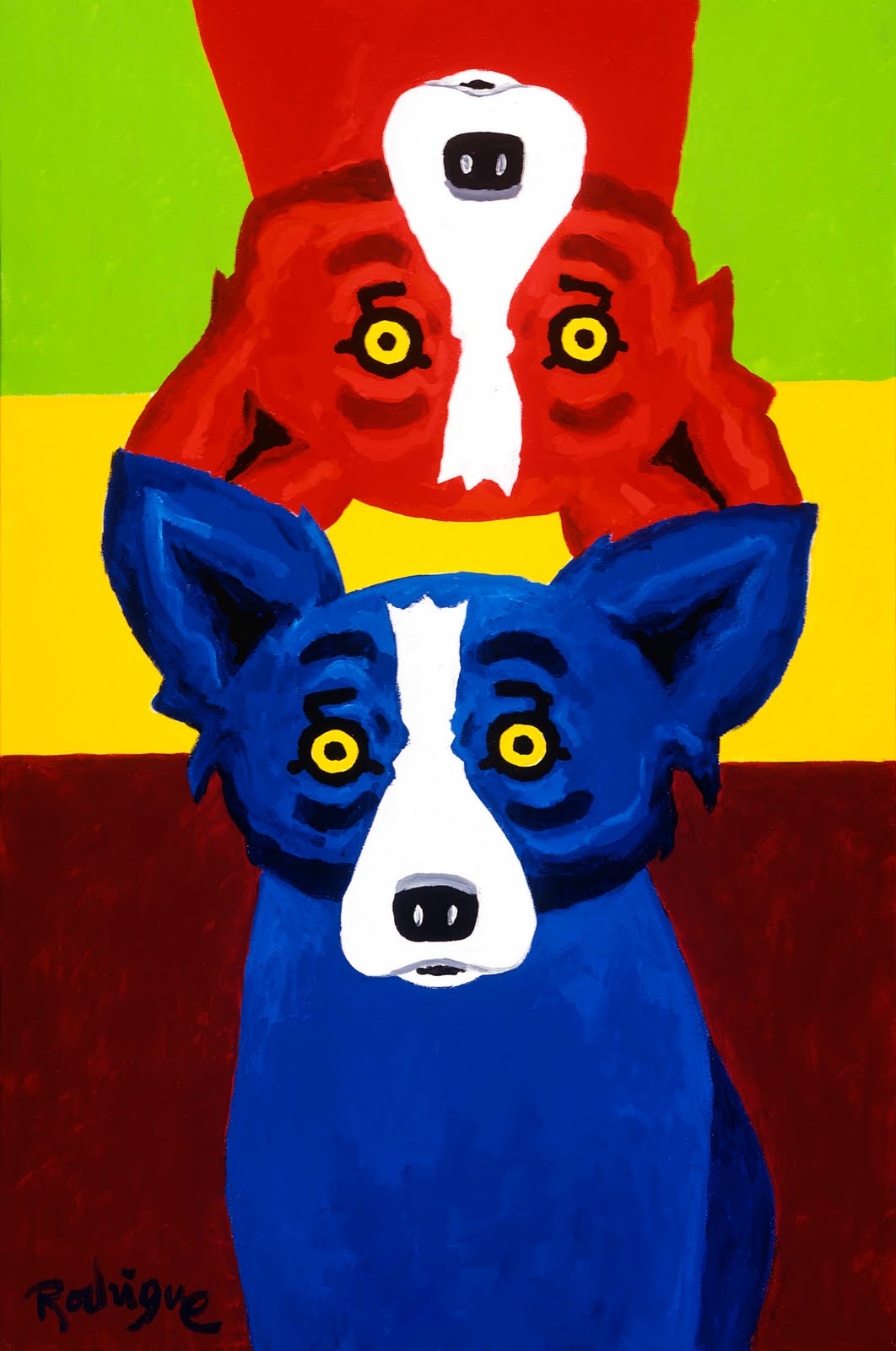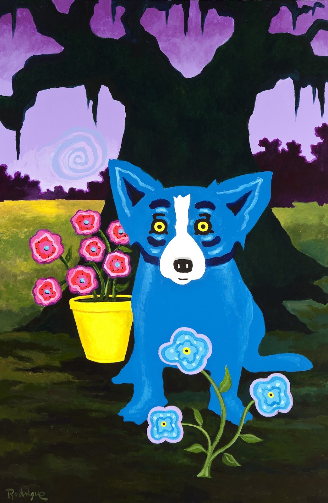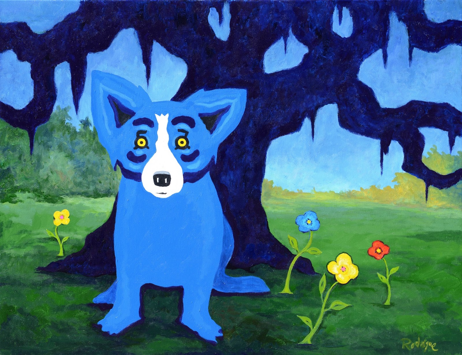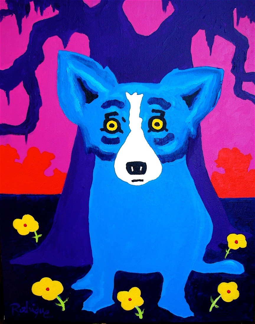 George Rodrigue to artysta, który zasłynął w latach 90. dzięki motywowi niebieskiego psa. Światową sławę zdobył dzięki plakatowi promocyjnemu szwedzkiej wódki Absolut, który zaprojektował w 1992 roku. Zaprojektował niebieskiego psa na wzór swojego psa Tiffany. Inspirację do stworzenia zaczerpnął z kreolskiej legendy o Loup garou, która opowiada o wilkołaku ukrywającym się w bagnistym krajobrazie południowej Luizjany.