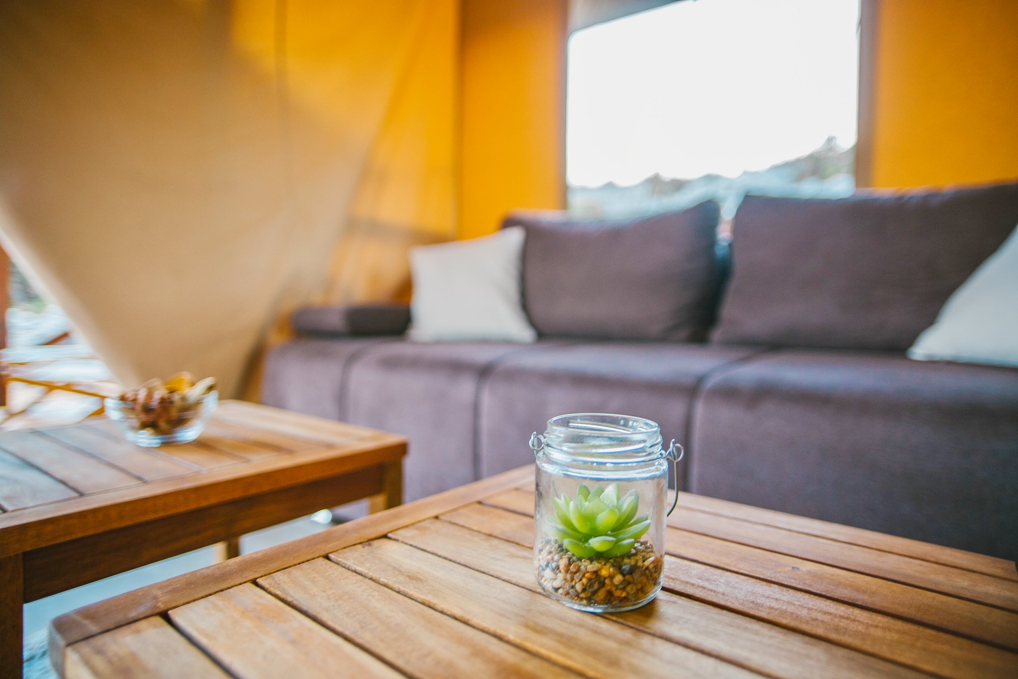 Z jednej strony oferty glampingowe wakacje Robinsona, a na drugim piętrze goście mają dostęp do w pełni wyposażonej kuchni z tosterem i lodówką oraz wygodnej łazienki. W namiocie znajduje się również telewizja satelitarna, a jeśli chcesz być na bieżąco z tym, co dzieje się podczas wakacji, możesz również połączyć się z bezpłatnym WiFi.