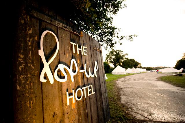 Podczas jednego z najpopularniejszych festiwali na świecie, w okolicy Glastonbury rozbić kilka tysięcy namiotów. Osoby z większym portfelem zostawiają rozbijanie namiotów profesjonalistom, gdyż zamiast pokoju w hotelu mogą wynająć efektowny namiot w wyskakujący hotel, na który składają się namioty większe od naszego domu.