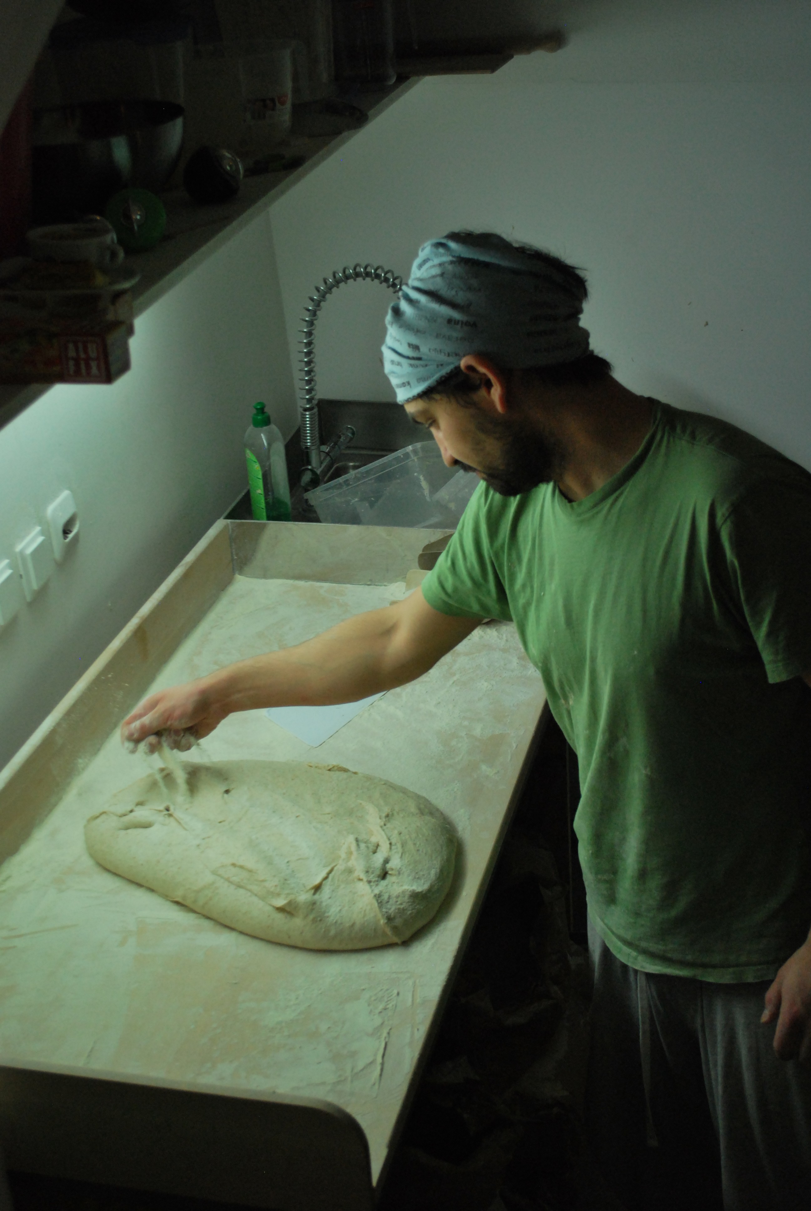 Poglejte, moj postopek je tak, da testo zamesim na mešalcu, vse ostalo je ročno delo. Zame sicer oblikovati 20 baget ne pomeni toliko manj dela kot jih oblikovati 40, vendar jih na koncu nimam kje toliko speči. Tako da zaenkrat imam opremo, kakršno imam, s katero pač naredim toliko, kolikor lahko. Prav tako na primer kruh iz kislega testa fermentiram 3 dni, pri čemer se zadnja faza odvija v hladilniku, kjer sem ponovno omejen s prostorom. Pred vsakim dnem naredim določeno količino testa in toliko ga lahko potem naslednji dan tudi spečem. Ne vidim pa smisla, da bi zaradi nekega zaslužka na hitro zamesil kruh, ga spekel v eni uri in ponudil ljudem.