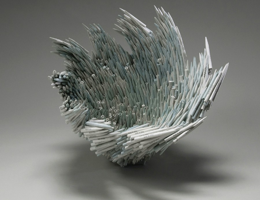 Większość z nas dostrzega prawdziwą wartość książek w ich treści. Ale nie artystka Jacqueline Rush Lee. Z książek (starych iw złym stanie zachowania) tworzy niesamowite rzeźby o organicznych i abstrakcyjnych kształtach. Doskonały!