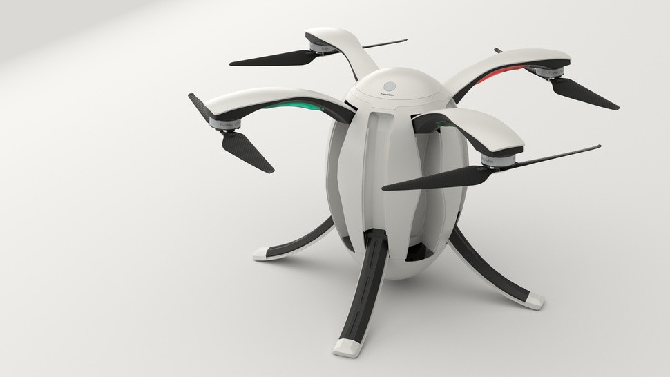 PowerJajko jest z pewnością najbardziej nietypowy dronkiedykolwiek widziałeś. To ma kształt jajka a w okresach bezczynności przypomina zaawansowane technologicznie jajo, z którego „wykluwa się” dron.