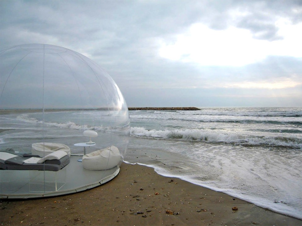 Może mieć jeden namiot bąbelkowy średnica odpowiednio 3, 4 i 5 metrów i korytarz szeroki na metr. A ponieważ wiemy, że rzadko udaje nam się przetrwać noc pod gwiazdami i rzadko widujemy wschód słońca, ten nadmuchiwany przezroczysty namiot to świetny pomysł na wakacje lub alternatywa dla sypialni na gorące letnie noce. Zwykle tego wszystkiego tracą ci, którzy biwakują, podczas gdy w przypadku One Bubble Tent nie rezygnujesz z komfortu namiotu poza odrobiną prywatności, ale jesteś ciesząc się wszystkimi smakołykami, jakie ma do zaoferowania natura. To jest wodoodporny i niepalny i odpowiednie na wszystkie pory roku, jako „typowy” system grzewczy jest również dostępny.