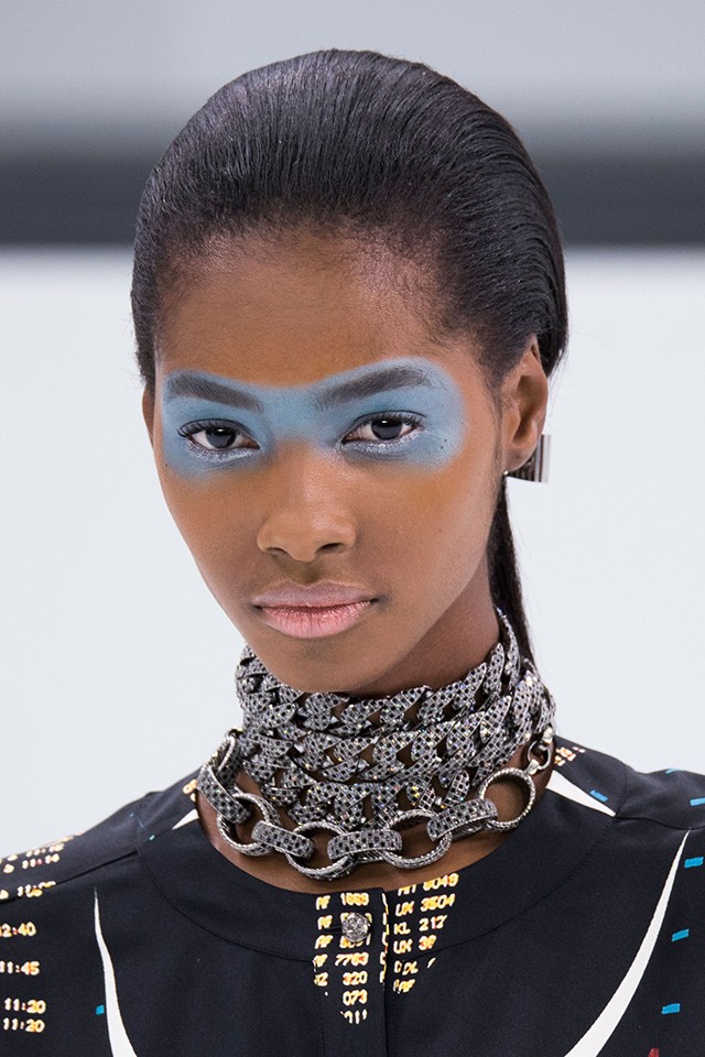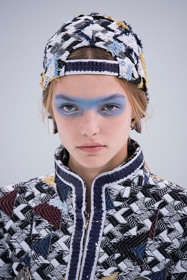 Ustvarjalni um kreativnega direktorja modne hiše Chanel – Karla Lagerfelda – ne pozna meja. Oblikovalec je kot vedno tudi letos med pariškim tednom mode muzej Grand Palais preobrazil z domiselnimi kulisami. Če je lani iz muzeja naredil francosko kavarno, so si obiskovalci letos modno pravljico za sezono wiosna/lato 2016 ogledali kar na letališču. Na modni reviji pa niso izstopala le vrhunsko krojena oblačila in luksuzni modni dodatki, ampak je pozornost vzbujal tudi zanimiv futuristični make up. Chanelove smernice ličenja za prihodnjo sezono narekujejo svežo polt, naravno obarvane ustnice in sinje moder make up v predelu oči, ki spominja na spalno masko. Zanimiv način ličenja, ki zajema predel oči, obrvi in nosa, si pobliže oglejte v galeriji.