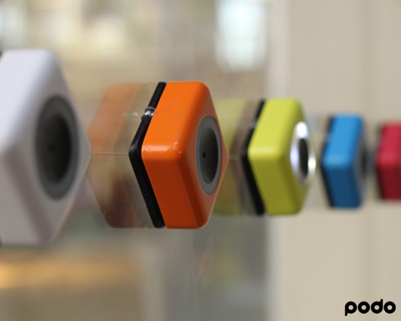 Kamera Podo, ki prihaja iz Podo Labsa, in ni kaj dosti večja od kostki lodu (5,8 x 5,8 x 2,54 cm), se lahko pohvali z ločljivostjo 8 megapikseli, med tem pa ne loči med trdimi površinami, saj se oklene prav vsak. Opravlja se jo preko brezplačne iOS ali Android aplikacije, ki omogoča, da uporabniki svoje fotografije ali videoposnetke pošljejo direktno na Facebook, Twitter in Instagrama ali pošljejo prek e-pošte.