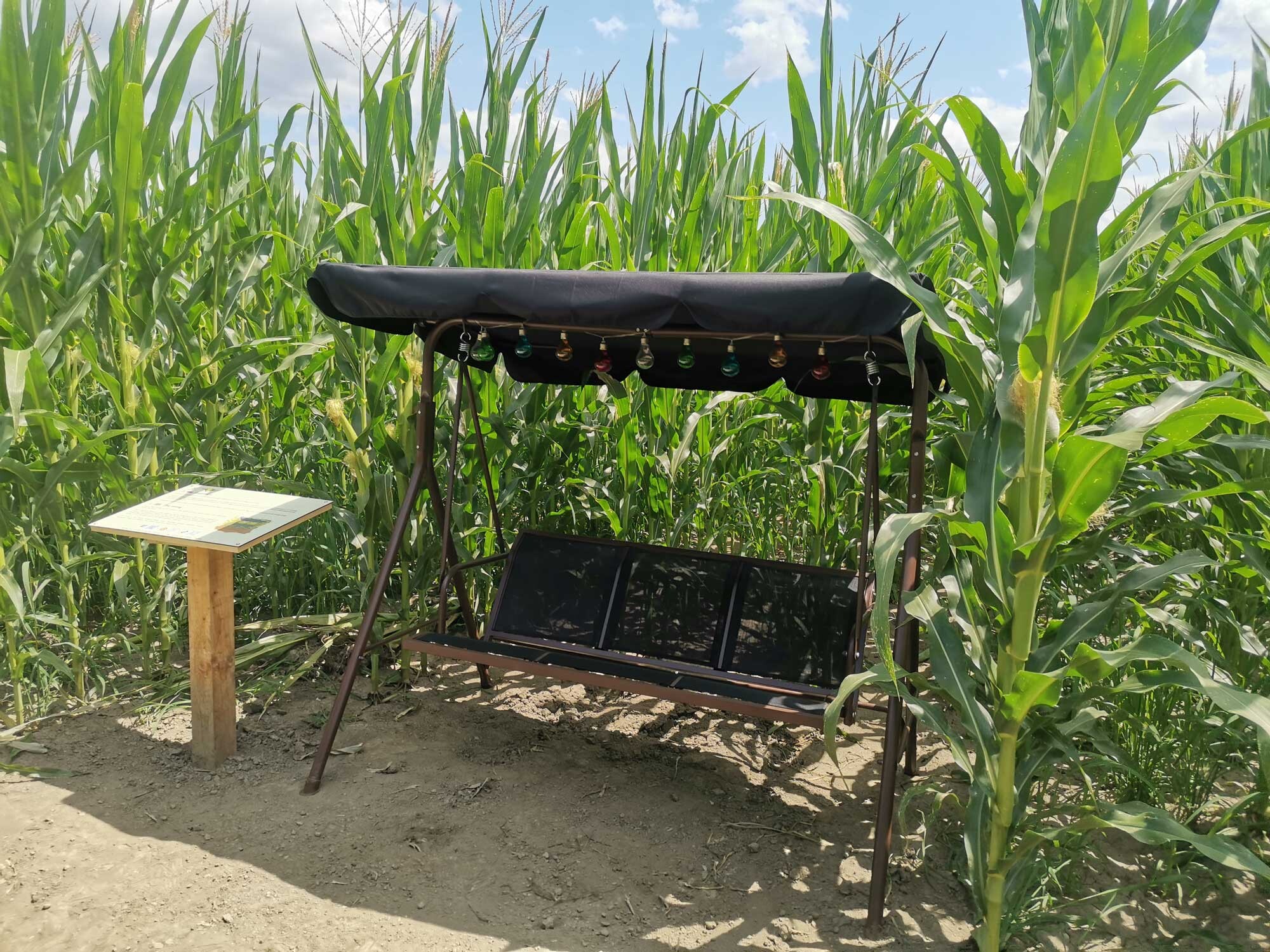 Kukurydziany labirynt Krtina ma dwa wejścia i dwa wyjścia, pośrodku labiryntu znajduje się duży most, z którego roztacza się widok na cały labirynt. Jako nowość w tym roku postawili labirynt bar, gdzie można posadzić kukurydzę w cieniu. Oferują napoje bezalkoholowe. Zapewniamy parking, toalety i łącze Wi-Fi, ale przede wszystkim rozrywkę.
