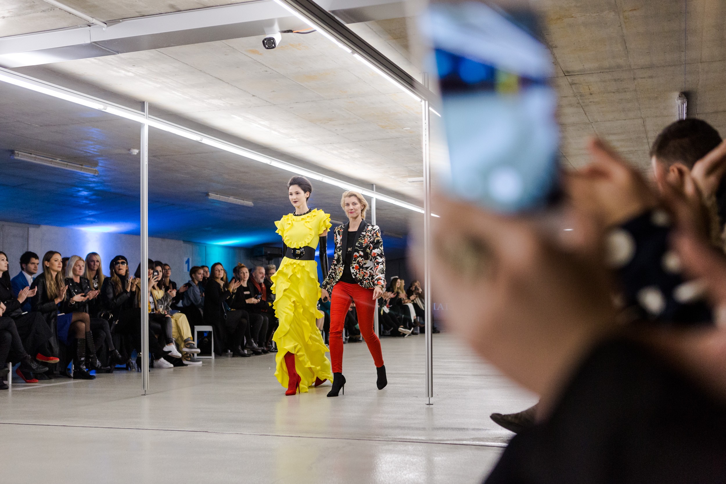 Večerna sklopa modnih revij sta otvorili madžarski oblikovalki. Kot zanimivost lahko omenimo, da je prva, Celeni, med drugim oblikovala uniforme za atlete madžarske reprezentance Paraolimpijskih iger v Riu de Janeiru leta 2016. Potem so sledile še druge modne poslastice, barvita mešanica materialov, oblik in stila, po modni pisti pa se je v kreaciji srbskega zvezdnika Boška Jakovljevića sprehodil Samuel Paljk, ki je eden najbolj zaželenih slovenskih moških modelov. Med posameznimi sklopi modnih revij, ki so mimogrede do zdaj vse po vrsti požele glasen aplavz obiskovalcev, si gostje lahko ogledajo tudi razstavo oblikovalcev nakita Olge Košica I Roka Marinška, ki sta jo umetnika, ki ustvarjata pod imenom olgafacesrok, postavila na vrtljiv oder.