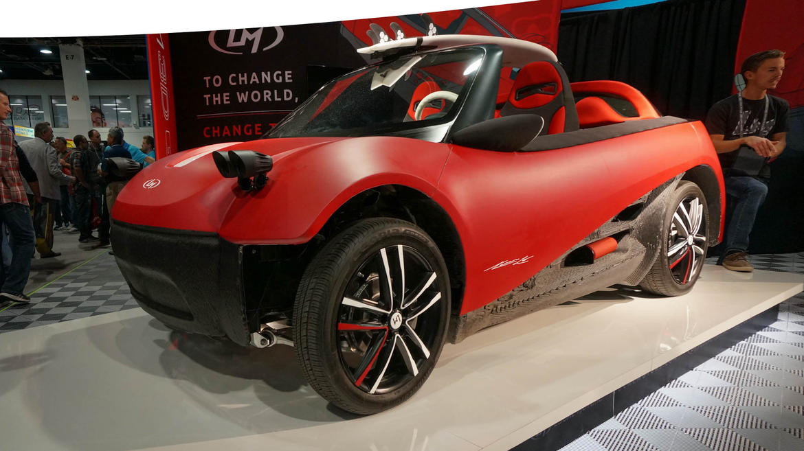 LM3D Pływanie to jest pierwszy na świecie drukowany samochód masowo produkowany. Uruchomienie motoryzacji Lokalne silniki mianowicie drukowanie s drukarka 3d przejechał tak daleko, że ten w pełni elektryczny samochód jest gotowy do produkcji seryjnej.