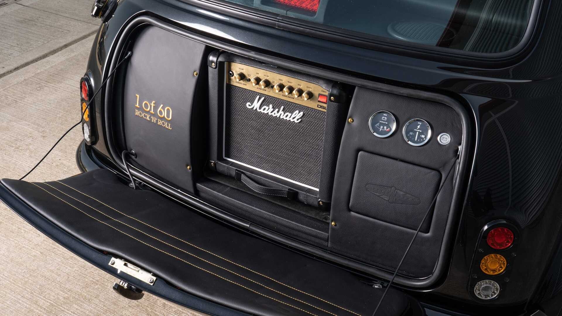 Najlepsza „pruntavščina” jest ukryta w tylnej części samochodu. Tam właśnie znajduje się wzmacniacz Marshalla DSL1, ze swoim niezależny zasilacz. Przenośny głośnik Bluetooth również dotrzymuje mu towarzystwa Marshalla Embertona, aby jeszcze bardziej cieszyć się muzyką. Jeździ czarno-złotym Mini 1,3 litra silnik i ma 5-biegowa Ręczna skrzynia biegów. Część ze sprzedaży każdego z 60 minisów trafi do organizacji Music Venue Trust, która wspiera niezależne sale koncertowe w Wielkiej Brytanii, które zostały znacząco dotknięte pandemią koronawirusa.
