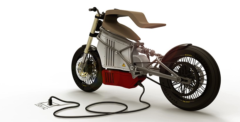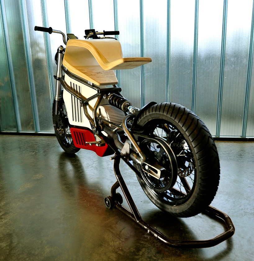 E-raw jest częściowo produkowany ze sklejki (laminat 80-warstwowy - dlatego też jest elastyczne i sztywne) I metale, a akumulator ładuje się za pomocą przyjaznego dzieciom systemu „Plug and Play” lub „Podłącz i graj”Motocykl nie jest przeznaczony do produkcji masowej, więc będziemy musieli zadowolić się zdjęciami i filmem. Co też nie jest złe.