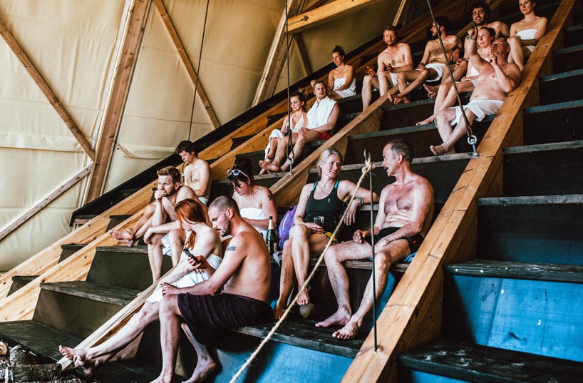 Wydarzenie SÓL, która rozgrywa się na plaży małej wyspy Sandhornøya, położonej w odizolowanej części północnej Norwegii, wzbogaciła się o kolejną zapierającą dech w piersiach kreację architektoniczną. Duży drewniana piramida, która jest największą sauną na świecie, do własnej dyspozycji goście oferuje ciepło i przestrzeń do spotkań towarzyskich, wymiany pomysłów i relaksu. Sauna, który dodatkowo fascynuje przyjemnym ambientowym tłem muzycznym, zbudowany jest według modelu tradycyjne norweskie stoiska dla ryb, a dzięki wznoszącym się trybunom przypomina także amfiteatr. Jednorazowo w saunie może przebywać maksymalnie sto osób, które mogą podziwiać niesamowity widok na... piaszczyste plaże, potężne góry I czyste morze.