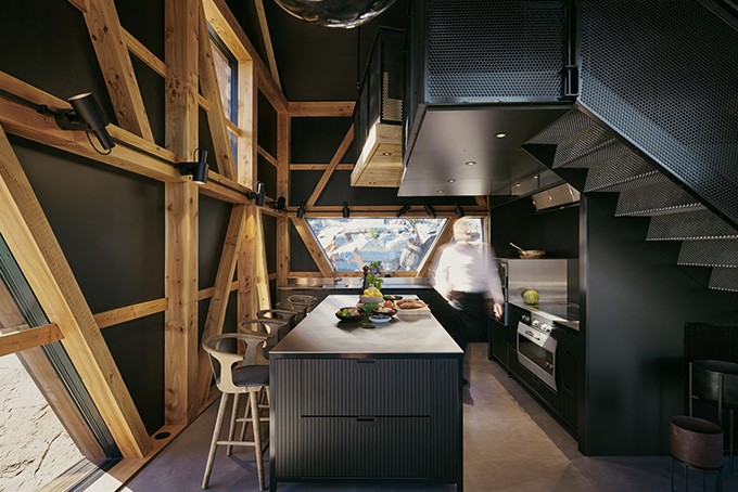 Norweskie słowo naustet tłumaczy się jako hangar na łodzie – ten wykonany jest z tradycyjnego drewna, ale łączy w sobie nowoczesną estetykę. Zewnętrzna część kabiny wykonana jest z świerki, malowane olejem lnianym, który drewno ciemnieje. Wnętrze, które na pierwszy rzut oka wydaje się małe, mieści jadalnię dziesięciu gości, kuchnia i cztery pokoje. W kuchni możesz przygotowywać posiłki w autentyczny norweski sposób - nad ogniem.