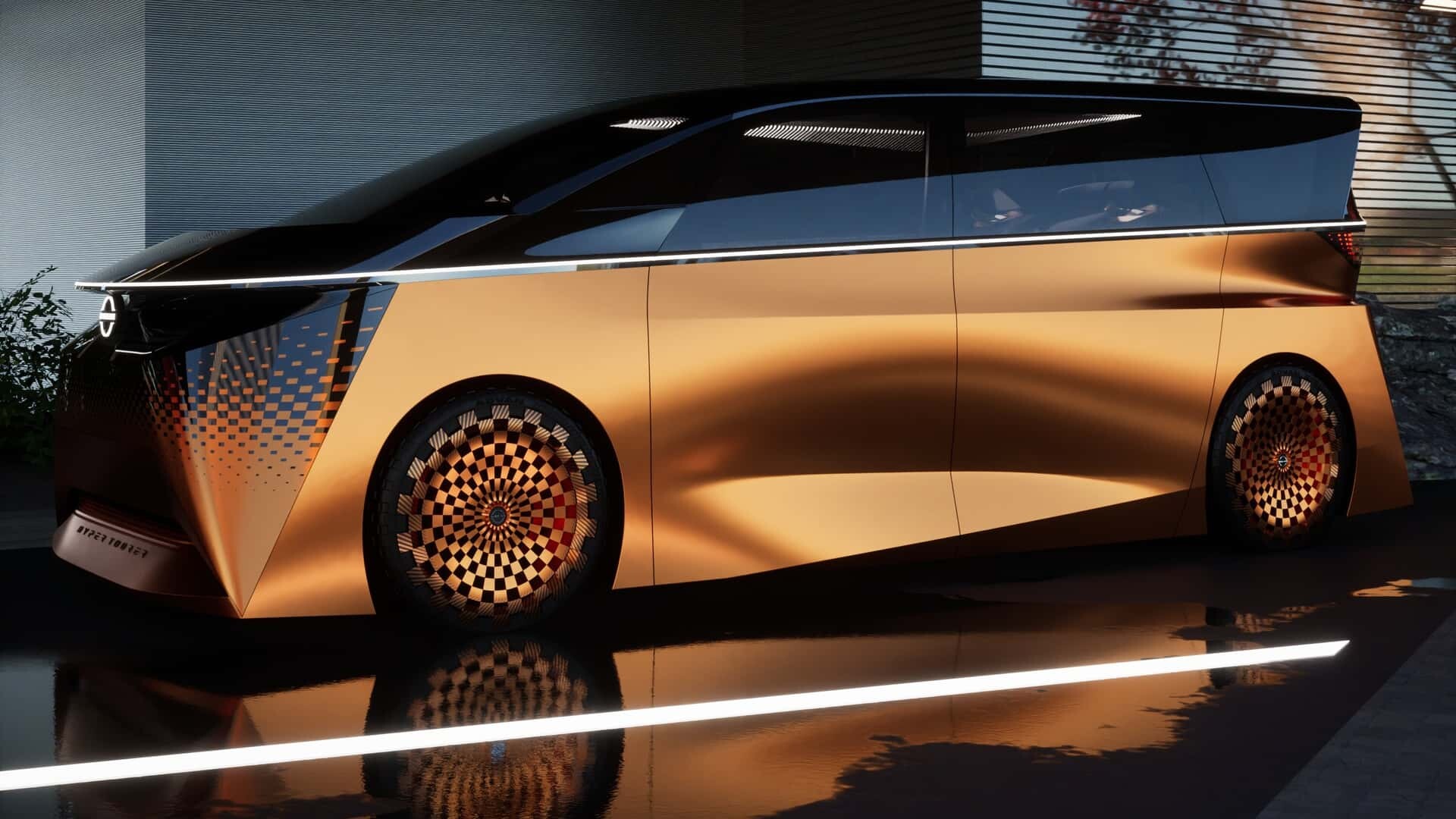 Firmy badają możliwości elektrycznych samochodów kempingowych i ujawniły już kilka ciekawych koncepcji. Hyper Tourer Nissana ale wnosi coś świeżego. W kabinie znajdują się przednie siedzenia, które obracają się o 360 stopni, umożliwiając interakcję pomiędzy pasażerami na różnych rodzajach siedzeń. Pasażerowie na tylnych siedzeniach mogą sterować nawigacją i systemem audio za pomocą przenośnego ekranu. Nie mniej imponująca jest górna część konsoli z oświetleniem wykorzystującym tradycyjne japońskie wzory, podczas gdy podłoga z panelu LED wyświetla obrazy koryta rzeki i nieba, tworząc relaksującą atmosferę.