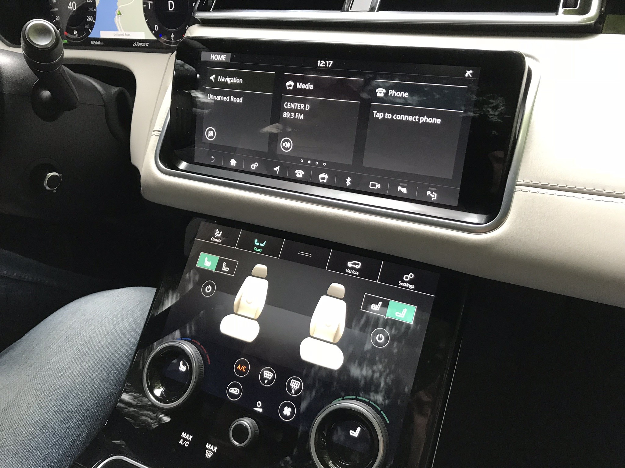 Koncentrujemy się na wnętrzu Range Rovera Velar minimalizm. Projektanci ograniczyli liczbę niezbędnych przełączników do absolutnego minimum. Z tego powodu wszystkimi urządzeniami w samochodzie steruje się poprzez system Dotknij Pro Duo, które tworzą dwa 10-calowe ekrany dotykowe. Znajdziesz go w środku wyszukane materiały, a połączenie skóry i Alcantary prezentuje się jeszcze lepiej. Jak zwykle w przypadku marki Range Rover, teraz mamy ich kilka do wyboru kombinacje kolorów.