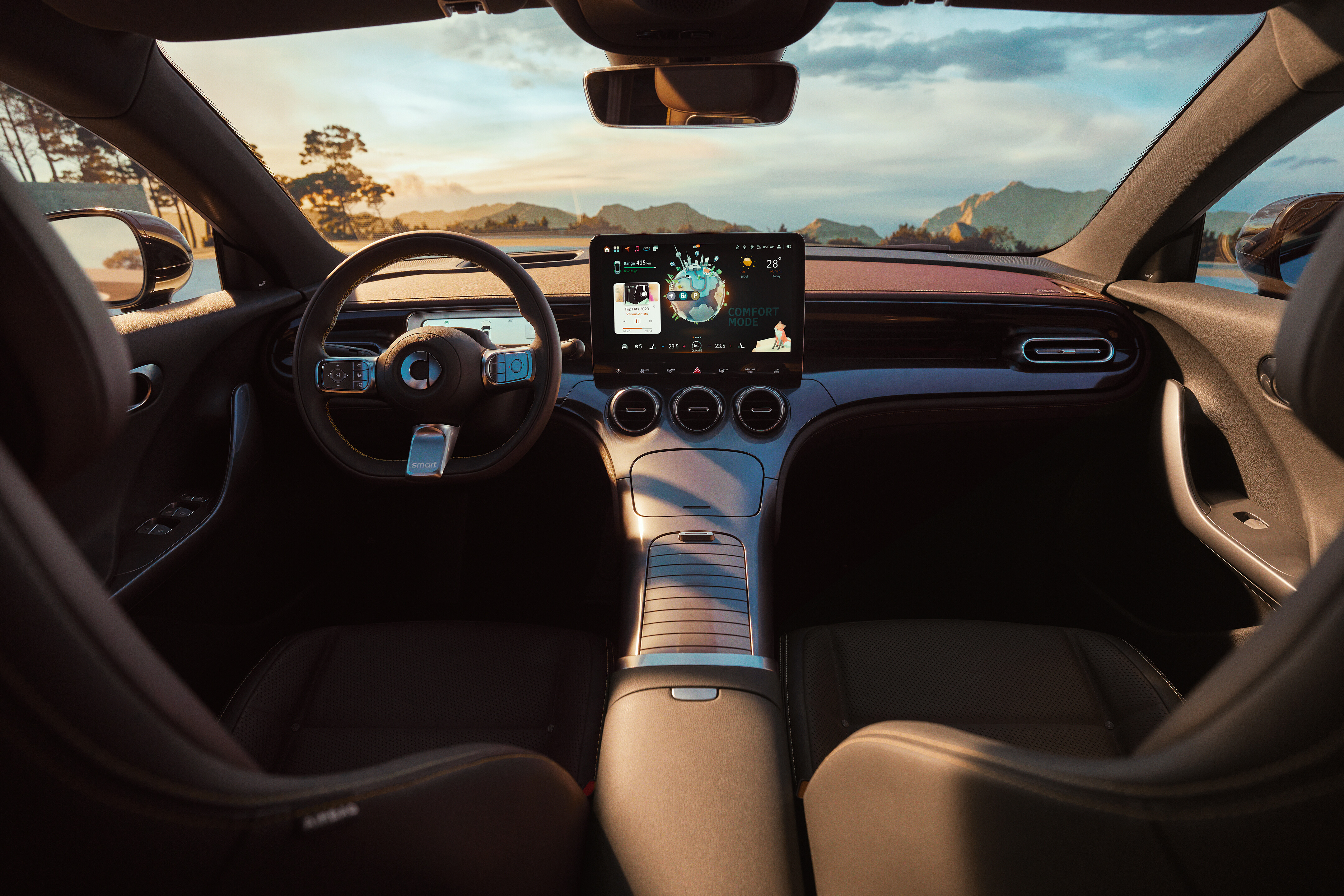Nowy Smart #3 jest jak stylowy krewny, którego widzisz raz w roku na rodzinnych spotkaniach i zastanawiasz się, czy na pewno jesteś z tej samej rodziny. Jego wnętrze jest haute couture, odzwierciedlając dziedzictwo #1. Podczas gdy wysoka konsola środkowa dyskretnie oddziela Cię od pasażera, 12,3-calowy ekran na górze konsoli przypomina, że technologia służy zabawie.