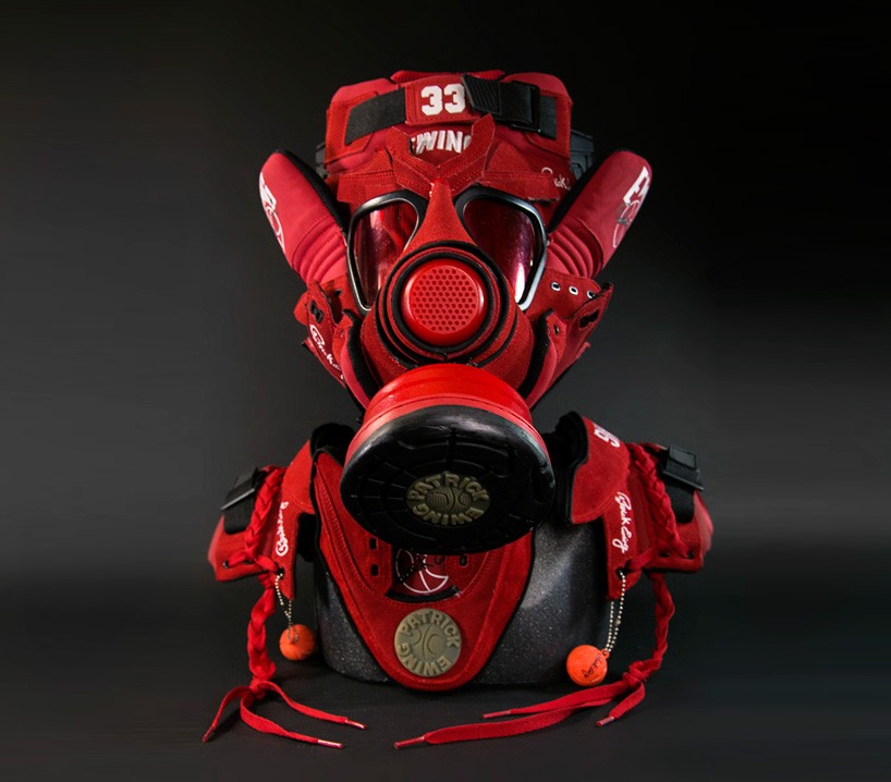 Używa do zrobienia używane tenisówki, który początkowo demontuje do czynników pierwszych, aby mógł następnie złożyć z nich szczegółowe maski i hełmy.