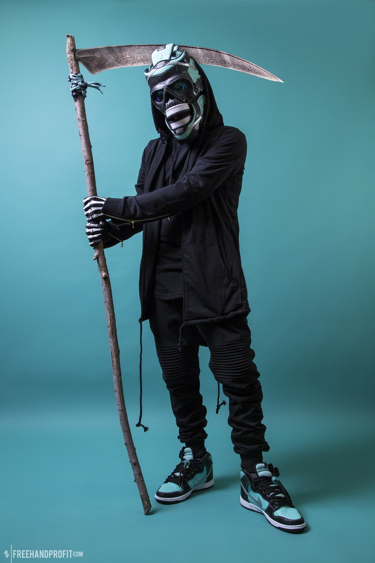 Artysta Gary Lockwood, lepiej znany jako Freehand Profit, nie jest zwykłym artystą. W odróżnieniu od większości nie korzysta z klasycznych materiałów typu drewno, glina, szkło, kamień itp., lecz maski i hełmy wykonuje z używanych sneakersów.