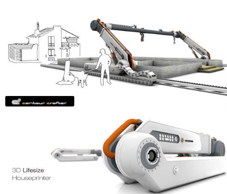 Revolucionaren robot, ki ga je zasnoval profesor Behrokh Khoshevis, lahko natisne celotno dvonadstropno hišo s površino do 250 kvadratnih metrov. Tehnologija je bila razvita na Univerzi v Južni Kaliforniji in je pridobila tudi pozornost Nase in večjih gradbenih podjetij. Tiskalnik temelji na načelu 3D tiskanja predmetov plast za plastjo. Ima dve žerjavni roki ter ogrodje, ki nosi tiskalno glavo. Celoten stroj teče vzdolž tirov in lahko dela na vseh delih hiše hkrati. Po mnenju profesorja Khoshevisa, lahko stroj natisne hišo v manj kot 24 urah. Da pa lahko tiskalnik opravi svoje delo, je potrebno vzpostaviti primeren prostor okoli mesta gradnje.