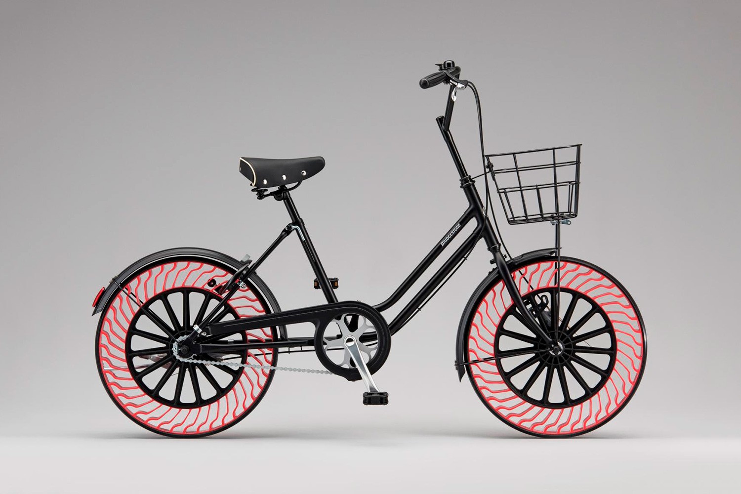 Bridgestone ma swoją rewolucyjną gumę Bez powietrza przygotowany do jazdy na rowerze. Jego zaletą jest m.in. to, że eliminuje możliwość perforacjiKonstrukcja samonośna składa się z: szprychy z polipropylenu (żywica termoplastyczna). Guma jest wykonana w całości z z materiałów pochodzących z recyklingu.