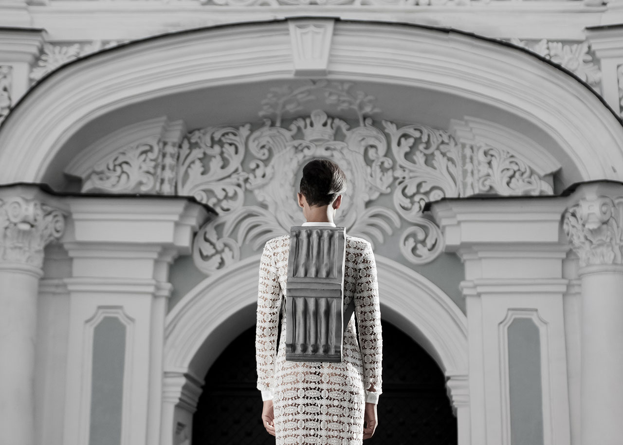 Arxi są ekstrawaganccy skórzane plecaki, które są lustrzaną, ale skórzaną wersją barokowych dekoracyjnych elementów architektonicznych, o których nie sądziliśmy, że znajdziemy je gdziekolwiek indziej niż na budynkach. Może w muzeum, ale nikt się ich nie spodziewał na plecach. Kolekcja SS16 dla wiosna/lato 2016 Ukraiński projektant mody z Kijowa Konstanty Koft właśnie to umożliwia.