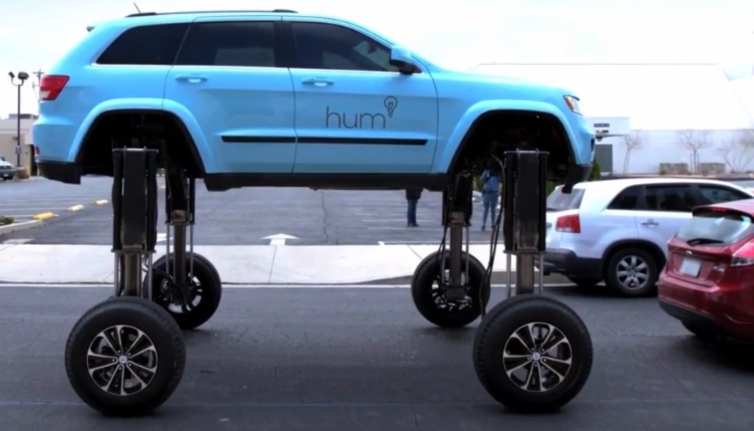 Hum Rider może nie jest pojazdem produkcyjnym, ale pojazd użytkowy, taki jak ten Jeep Grad Cherokee, to coś, co każdy chciałby mieć, zwłaszcza gdy stoimy w korku. Za pomocą podnośników hydraulicznych Hum Rider wznosi się ponad inne pojazdy i dosłownie jeździ nad nimi.