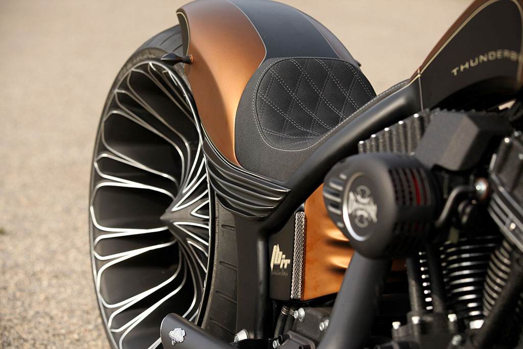 Jeśli chodzi o motocykle, nie ma nic lepszego niż połączenie klasycznego designu z mocą i komfortem, jakie ma do zaoferowania współczesność. Z tej filozofii po raz kolejny skorzystał niemiecki warsztat motocyklowy Thunderbike zajmujący się tuningiem. Mianowicie stworzyła złomowany silnik Production-R, silnik, który pasowałby do filmów Sin City lub Irony Sky. Powstał we współpracy z Harleyem Davidsonem i Pirelli.