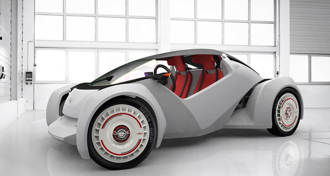 Przypadek dvosedežni kupe brez strehe, ki tehta skoraj eno tono ter je v celoti natisnjen v ogromnem 3D tiskalniku velikosti kontejnerskega zabojnika. Zanimivo je, da je večino sestavnih delov podvozja že sestavljeno, predno gre avtomobil v tisk. Na ta način pa avtomobil dobi izjemno konstrukcijsko trdnost. Strati za električno vozilo (ev), ki lahko trenutno doseže le okoli 40km/h, z njim pa je možen doseg okoli 180 kilometrov. Družba obljublja tudi možnost hibrida, kot tudi klasičnega motorja na notranje izgorevanje.
