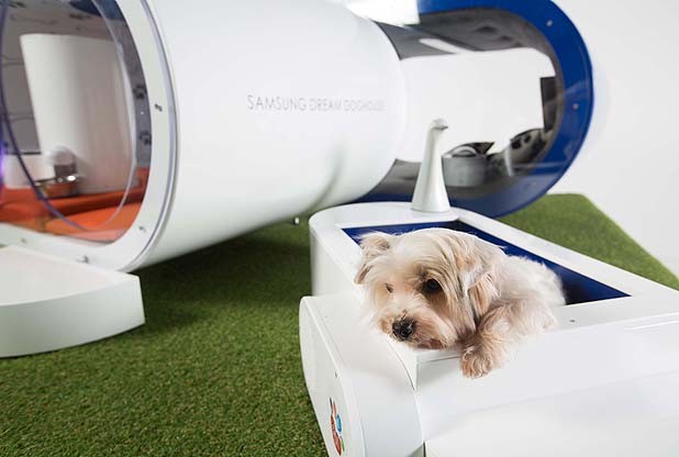 SAMSUNG je pasjo hišico prihodnosti, vredno kar 30 tysięcy dolarów, predstavil na največjem kinološkem sejmu na svetu, Crufts 2015, ki ravnokar poteka v angleškem Birminghamu (5.-8. marec 2015), kjer so nekateri srečneži, in tu govorimo o psih, že lahko okusili kaj jim prinaša przyszły, kot so si jo zamislil pri Samsungu.