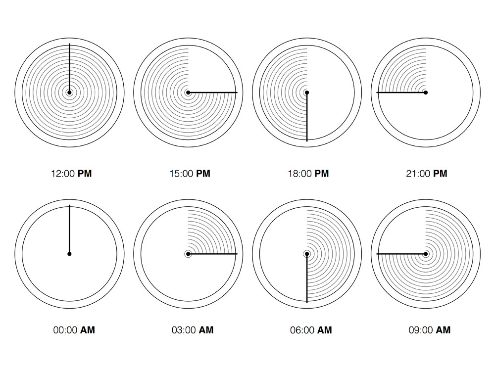 Piasek nie jest klasyczną klepsydrą. Mianowicie nie składa się on ze stojaka i „uszczypniętej” butelki, ale z zegara w formie zegara ściennego, który wskazuje godzinę rysując faliste, hipnotyczne wzory równoległych linii za pomocą grabi/wskaźnika na piasku jakby traktor orał pole. Inspirowany jest ogrodami zen i działa równie uspokajająco jak grabienie piasku i podziwianie takiego ogrodu.