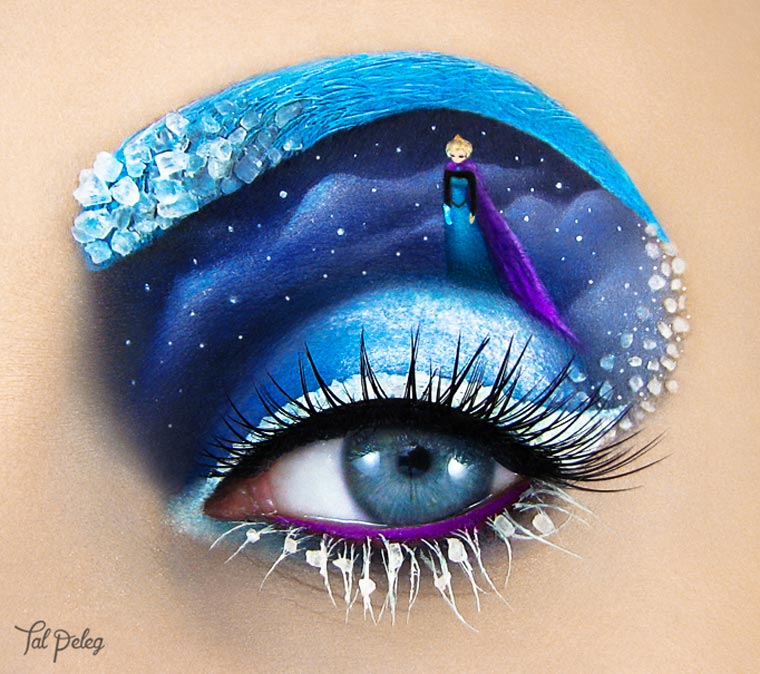 Možnosti za senčenje in poudarjanje oči je nešteto, a nobena ni tako domiselna kot senčenje izraelske umetnice Tal Peleg, znane tudi kot Scarlet Moon, ki je predel med očmi in obrvmi uporabila za slikarsko platno. S svojimi stvaritvami se je poklonila filmom, kot so Ledeno kraljestvo, Čarovnik iz Oza, Deadpool, Izžarevanje in Coraline, ter slavnim likom, kot so Mali princ in smeški.