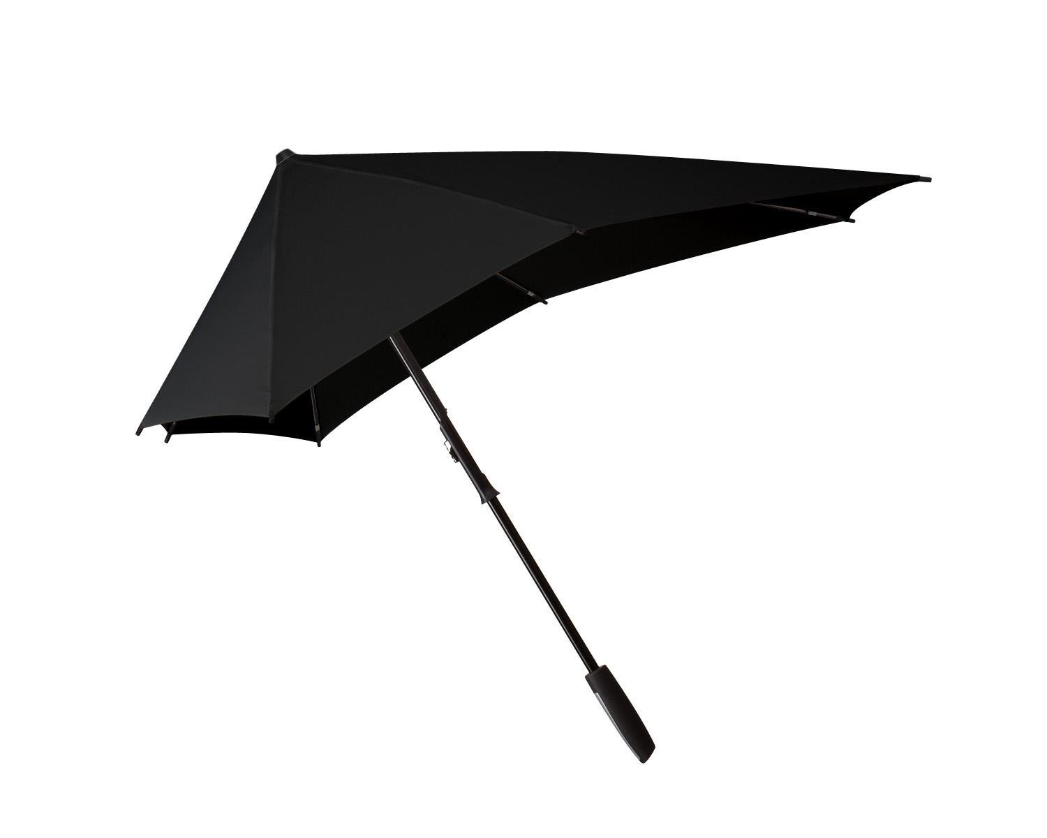jedyny »mądry„Cechą tego parasola jest jego kształt, który również jest przeciwstawny silniejszy wiatr W zsyp. Jego kanciasty kształt – krótszy z przodu niż z tyłu – poprawia aerodynamikę przebić się przez ulewę, bez wdzierania się wiatru pod parasol i wywracania go na lewą stronę podczas silniejszych podmuchów. Ergonomiczny uchwyt zapewnią wygodę noszenia parasola w dłoni, a kolory i kształty o to zadbają wyglądasz świetnie, pomimo złej pogody.