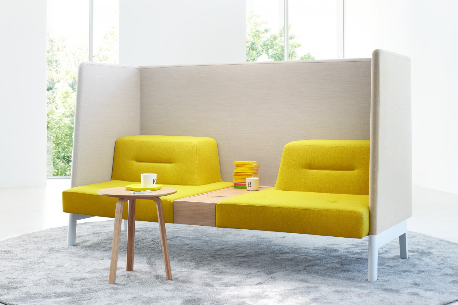 Skupaj z živobarvnim oblazinjenim pohištvom, svetilkami in stranskimi mizicami pričarajo udoben in privlačen delovni prostor, prilagojen zahtevam sodobnega človeka, ki mu pisarna predstavlja njegov drugi dom.